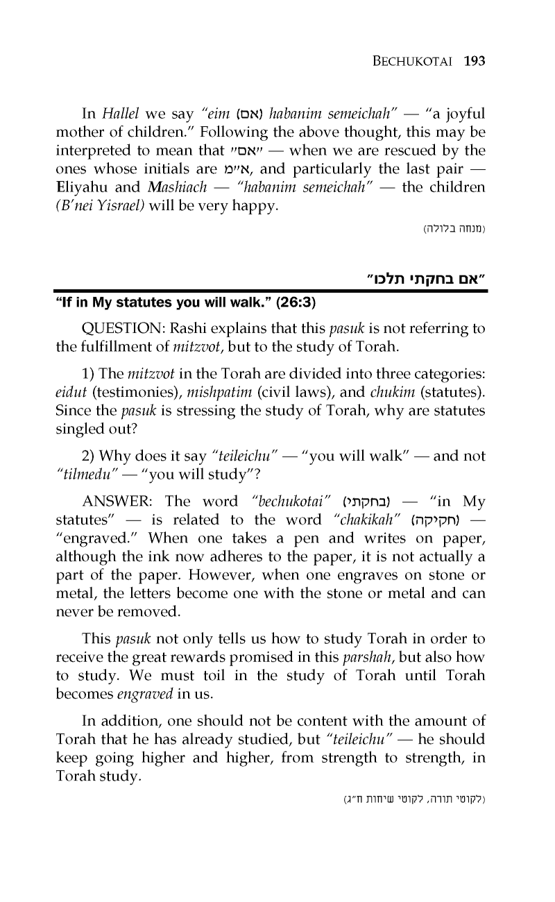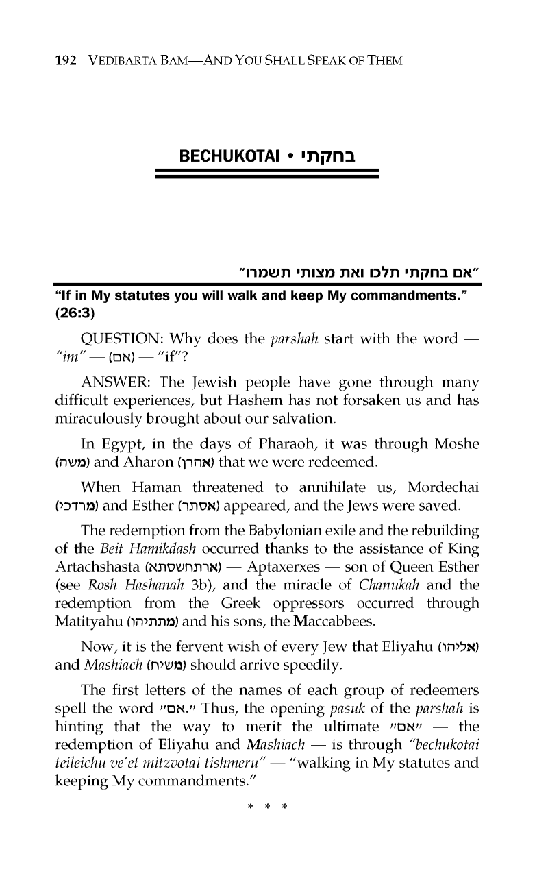 PARSHAS BECHUKOSAI