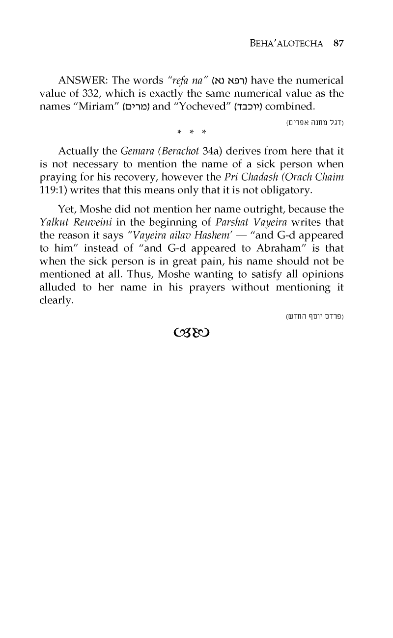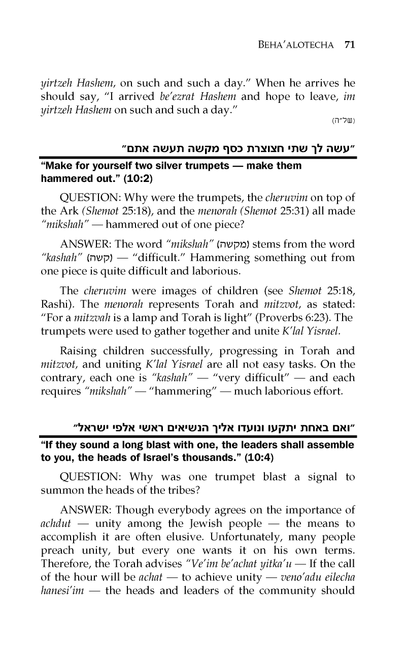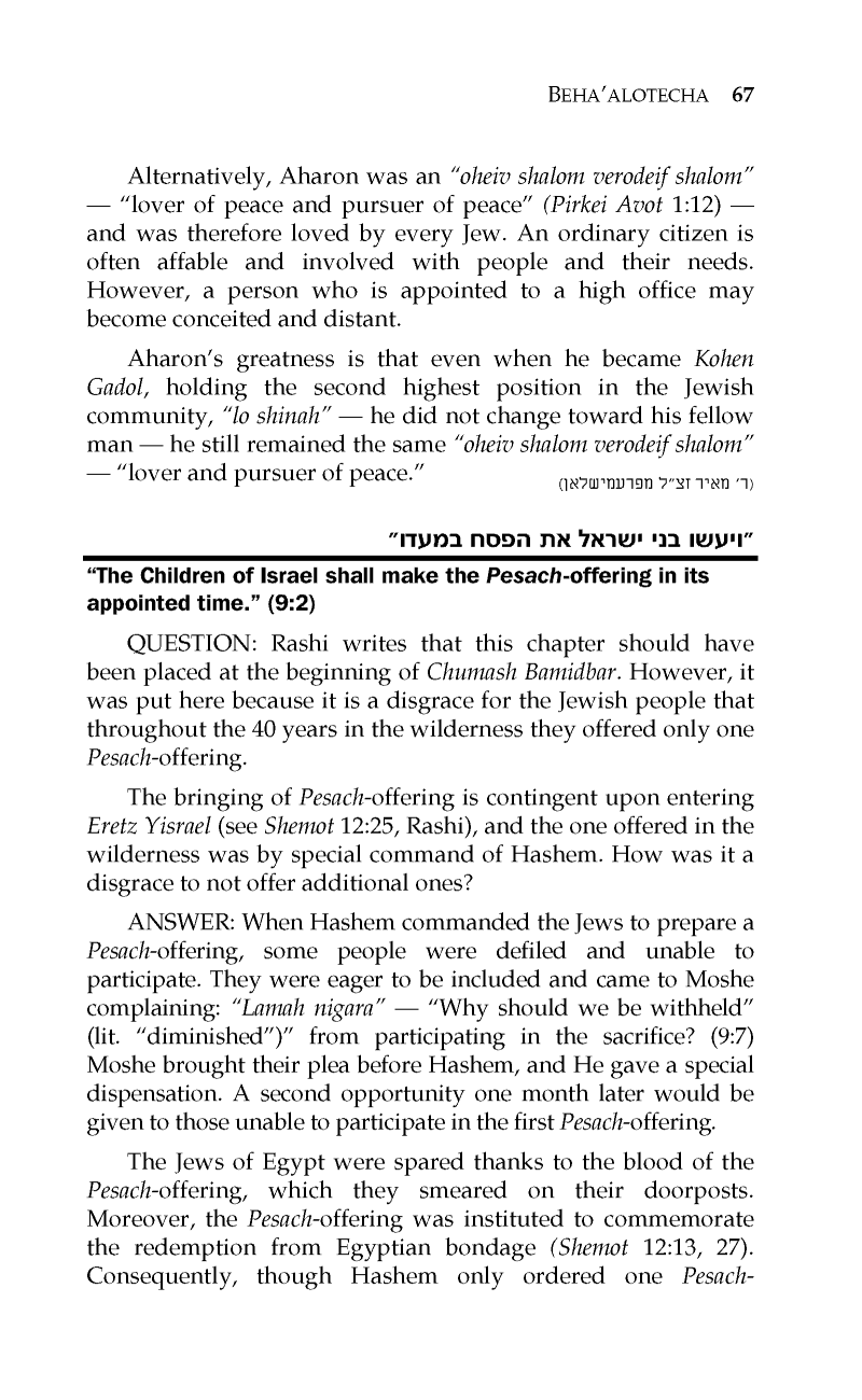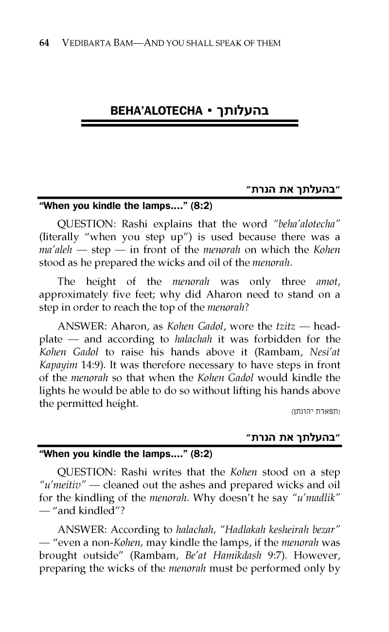 PARSHAS BEHA’ALOSECHA